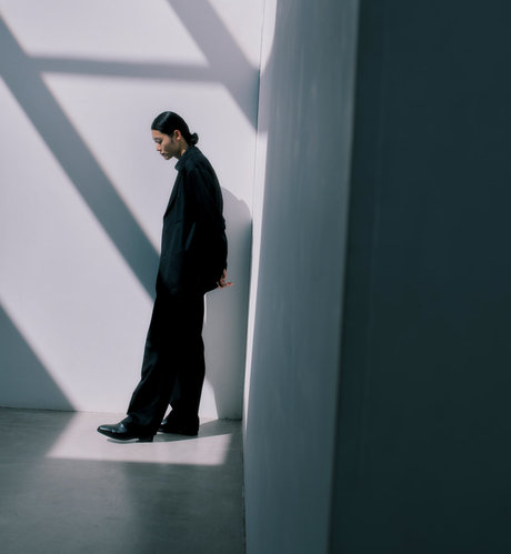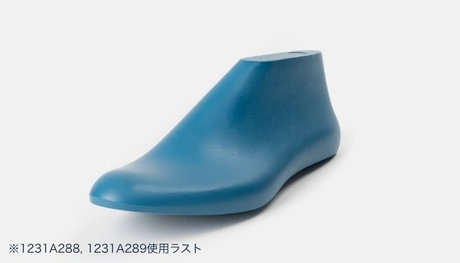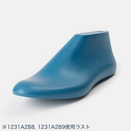 つま先が長めのラウンドシルエットに、ステッチのないウェルトが調和。足当たりの良いメッシュと人工皮革が足を包み、脱げにくさを考慮し履口にパッドを採用。全面ラバーのコバはレザーソールの艶を表現。細分化されたソール構造が軽量性と衝撃緩衝性を両立する。
