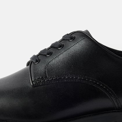 深めのシボが織りなす独特の質感が高級感を引き立てる。幅広いビジネスシーンに対応するUチップデザインが品格と機能性を両立。柔軟性に優れたステアレザーが足を優しく包む。摩耗に強いラバーをヒール部に使用し、革靴としての経年変化を楽しめる。