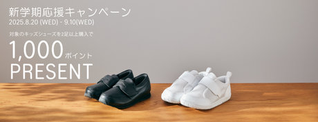 新学期が始まるこの季節、対象のキッズシューズを2足以上購入で、キャンペーンポイントを追加でプレゼント!