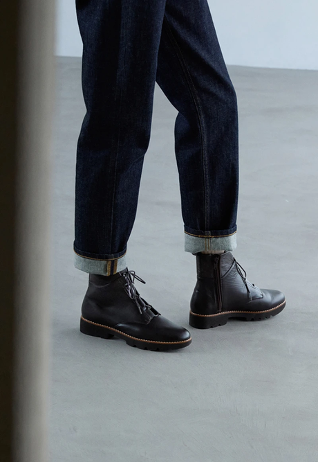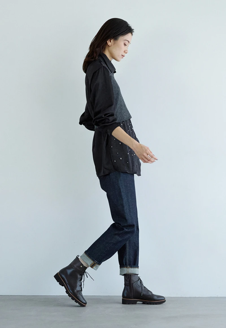 ワンウォッシュデニムで引き締めて、どこか懐かしくも新鮮なウエスタンテイストに。トレンド感を押さえつつ、ラフだけど洗練された⼤⼈のウエスタンシックスタイル。PEDALA SOFT RUGGED BOOTS