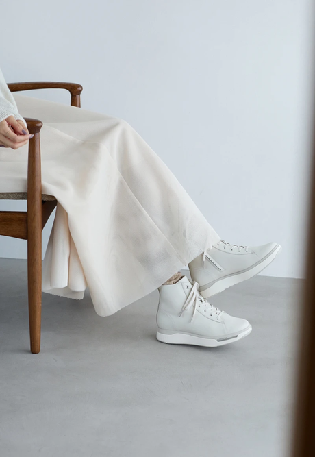 さまざまなコーデにマッチするミドルカット。アッパーにははっ水効果のある素材を使用。