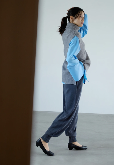 ローヒールパンプスのほどよいきちんと感に合わせて、全体はゆったりとしたシルエットのアイテムでリラックス感をプラス。