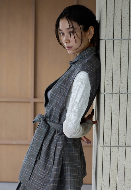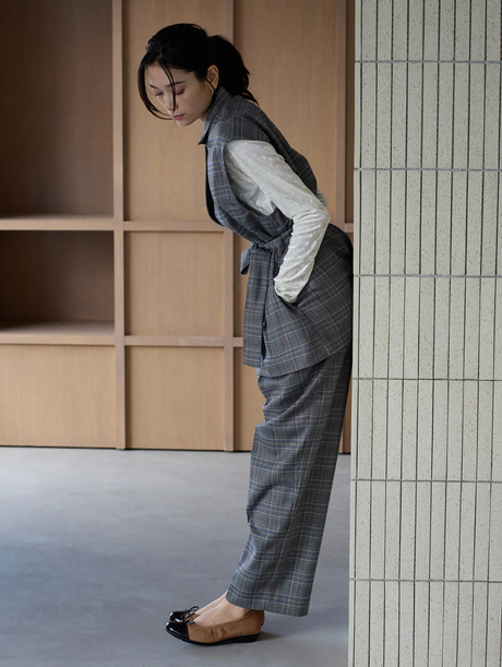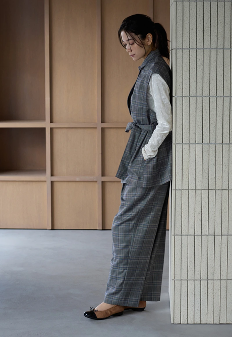 トレンドのチェック柄を、グレンチェックのセットアップで取り⼊れてクラシカルに。