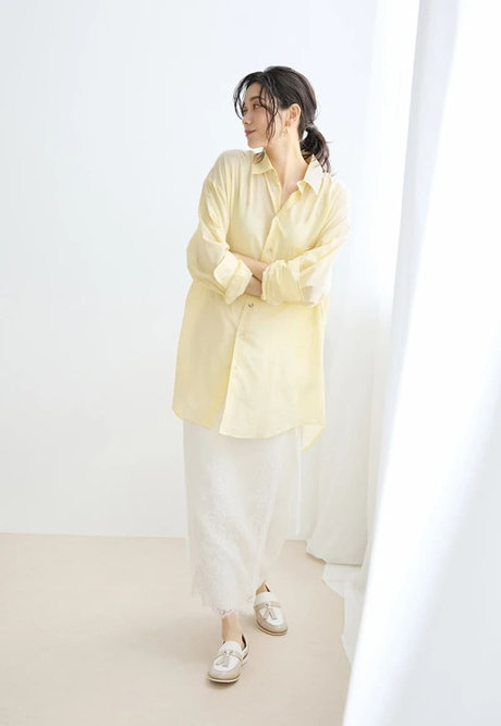 春に取り⼊れたいフレッシュなイエローカラーはさらっとシャツで取り⼊れて。PEDALA SOFT TRAD