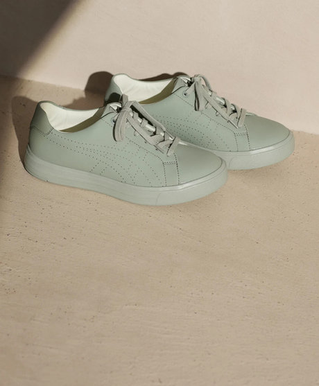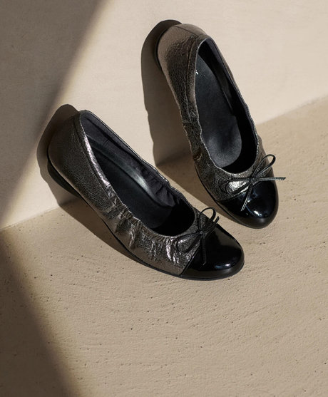 箔のクラッキングが放つさりげない表情と、スカーフの大胆なカラーで装いに動きとアクセントを取り入れました。 奥行きのあるガンメタルの輝きも、デニム地とあわせて自然となじみます。PEDALA FLAT CASUAL