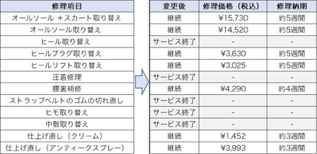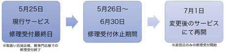 一部サービスの終了、修理価格および修理納期の改定をさせていただきます。