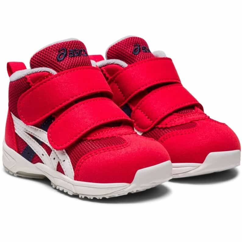 約1歳から3歳の幼児向けに展開する「BABY」シリーズ。足首の安定性に優れたミドルカットシューズです。かかとの安定性を重視し、かかとを包み込む立体的な中敷を採用しています。扇形のつま先部分は足ゆびをのびのびと動かすことができ、踏ん張りやすいのが特徴。足の曲がる位置を考慮して設計した分割ソールは屈曲性にすぐれ、足の動きにしなやかに追従します。インナーソールの素材には抗菌・消臭効果のあるシャインアップと、汗をすばやく吸収・拡散してドライ感を保つウォーターマジックを採用。靴の中を快適に保ちます。フィット感の調節がしやすい2本ベルトで、履き口は脱ぎ履きがしやすいオープンベロ構造。アッパーは通気性に優れたラッセルメッシュ。ウエアとのコーディネートがしやすい、カラーです。