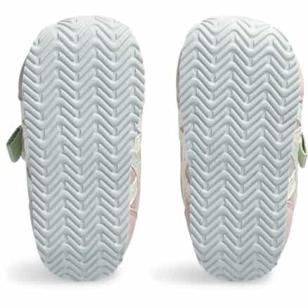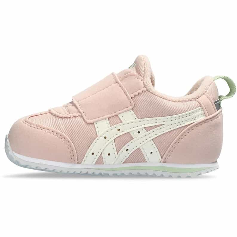 アシックスの靴は成長中の子供の足にいいと聞いて、購入しました。つま先はちゃんと曲がるし、かかとは足首支えてくれるようにしっかりしてて、履かせる時もベリっと大きく開くので履かせやすいです!カラーも淡いピンクで可愛いです。