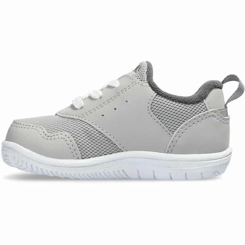 自分で靴を履き始めた子にとっては履きやすい機能(ベロがない、踵部分に付いている取手(紐)が中心より外側に付いている)があるので、子ども自身は扱いやすい靴だと思います。