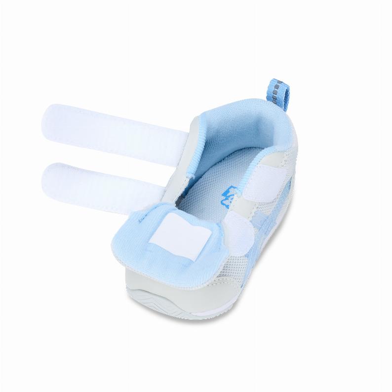 ベネッセたまひよの編集部と一緒に、ママが欲しいと思えるシューズを考えました。約1歳から3歳の幼児向けに展開するシューズ。足首の安定性に優れたミドルカットタイプです。扇形のつま先部分は足ゆびをのびのびと動かすことができ、踏ん張りやすいのが特長です。アウターソールは、足の屈曲位置に合わせて溝を配置した「フレックスグルーヴ」を採用。足の動きにしなやかに追従します。かかとの安定性を重視し、かかとを包み込む立体的なインナーソールを使用しています。インナーソールの表面材には抗菌・消臭効果のあるシャインアップと、汗をすばやく吸収・拡散してドライ感を保つウォーターマジックを採用。靴の中を快適に保ちます。さらにサイズアウトの目安のラインと、お子さまが靴の左右が認識できるイラストを入れました。アッパーは通気性に優れたラッセルメッシュを使用。お子さまのピュアなイメージを表現するためにアシックスストライプにはクリア素材を使用しました。街灯や車のライトなどの光を反射する再帰反射材(リフレクター)をかかと部に配置しています。