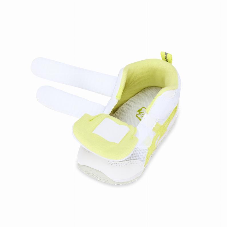 ベネッセたまひよの編集部と一緒に、ママが欲しいと思えるシューズを考えました。約1歳から3歳の幼児向けに展開するシューズ。足首の安定性に優れたミドルカットタイプです。扇形のつま先部分は足ゆびをのびのびと動かすことができ、踏ん張りやすいのが特長です。アウターソールは、足の屈曲位置に合わせて溝を配置した「フレックスグルーヴ」を採用。足の動きにしなやかに追従します。かかとの安定性を重視し、かかとを包み込む立体的なインナーソールを使用しています。インナーソールの表面材には抗菌・消臭効果のあるシャインアップと、汗をすばやく吸収・拡散してドライ感を保つウォーターマジックを採用。靴の中を快適に保ちます。さらにサイズアウトの目安のラインと、お子さまが靴の左右が認識できるイラストを入れました。アッパーは通気性に優れたラッセルメッシュを使用。お子さまのピュアなイメージを表現するためにアシックスストライプにはクリア素材を使用しました。街灯や車のライトなどの光を反射する再帰反射材(リフレクター)をかかと部に配置しています。
