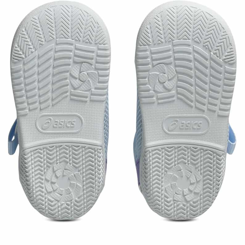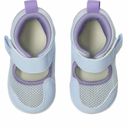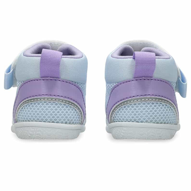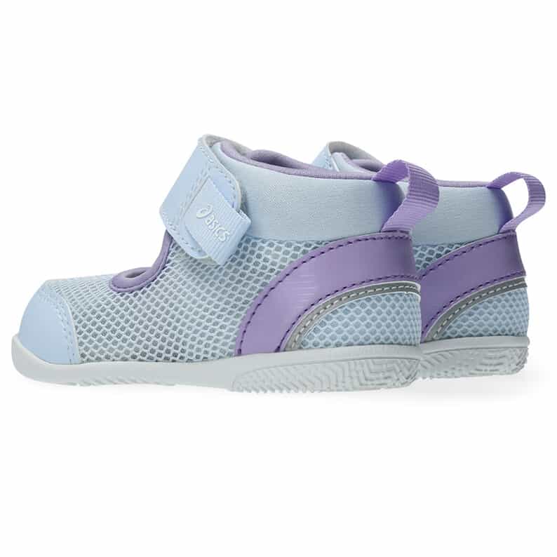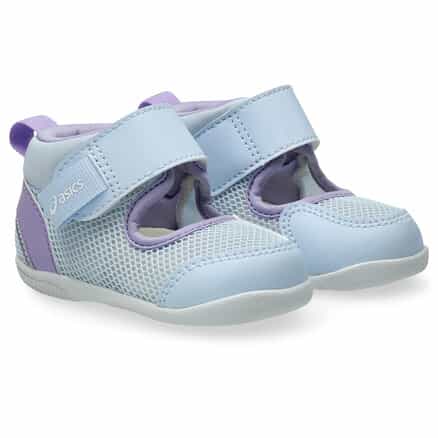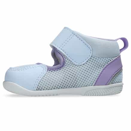 歩きはじめの約3カ月間の赤ちゃん向けに展開するシューズ。暑い季節の外遊びやキャンプなどのアウトドアシーンで、アクティブに過ごせるシューズです。つま先を大きく巻き上げる形状でつまずきにくくし、スムーズな歩行をサポート。3D設計のファーストシューズ専用インナーソールにより、赤ちゃんの小さなかかとを包み込み、安定性を高めます。脱ぎ履きしやすい1本ベルト。アッパーは通気性がよい、目の粗いラッセルメッシュを使用。つま先部分とかかと部が覆われたデザインで、真冬以外の3シーズンに活用できるアイテムです。※濡れた路面の上などはすべりやすく大変危険ですので、水辺での使用の際はご注意ください。