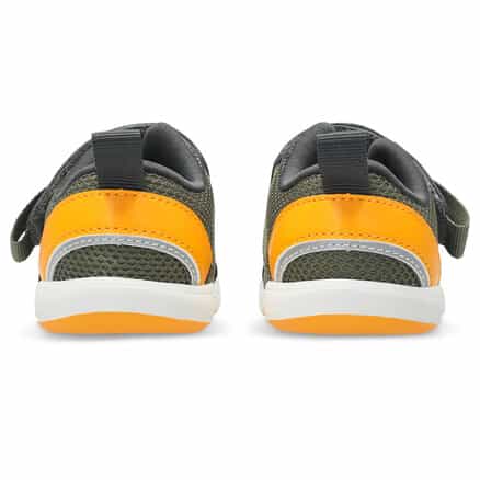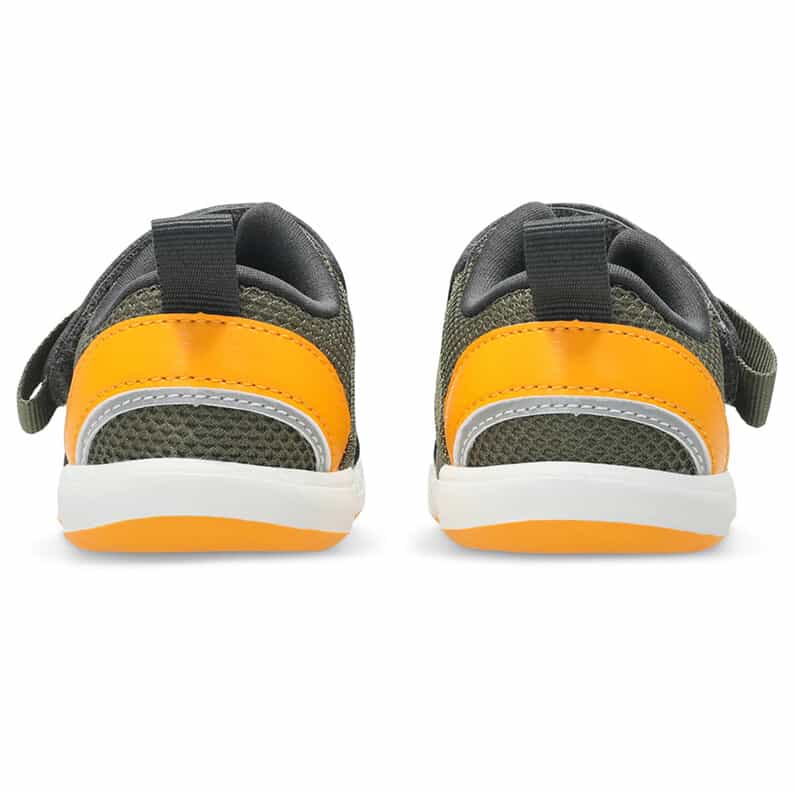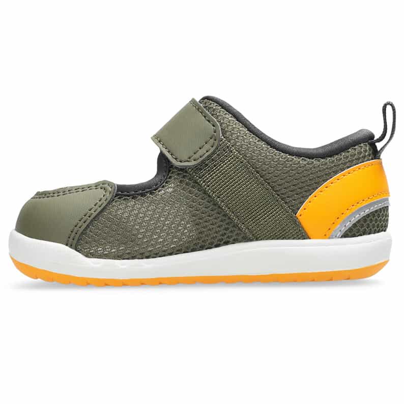 約1歳から3歳の幼児向けに展開するシューズ。暑い季節の外遊びやキャンプなどのアウトドアシーンで活躍するシューズです。アウターソールは水はけを考慮した意匠を取り入れ、耐滑性に配慮したラバーを採用。インナーソールはかかとの安定性を重視した構造で、抗菌・消臭効果のあるシャインアップと、汗をすばやく吸収・拡散するウォーターマジックを使用。脱ぎ履きしやすい1本ベルト。アッパーは通気性がよい、目の粗いラッセルメッシュ。つま先部分とかかと部が覆われたデザインで、真冬以外の3シーズンに活用できるアイテムです。※濡れた路面の上などはすべりやすく大変危険ですので、水辺での使用の際はご注意ください。