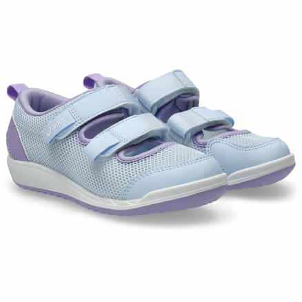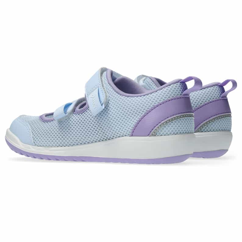 約3歳から7歳の児童向けに展開するシューズ。暑い季節の外遊びやキャンプなどのアウトドアシーンで活躍するシューズです。アウターソールは水はけを考慮した意匠を取り入れ、耐滑性に配慮したラバーを採用。インナーソールはかかとの安定性を重視した構造で、抗菌・消臭効果のあるシャインアップと、汗をすばやく吸収・拡散するウォーターマジックを使用。フィット感のよい2本ベルト。アッパーは通気性がよいラッセルメッシュ。つま先部分とかかと部が覆われたデザインで、真冬以外の3シーズンに活用できるアイテムです。※濡れた路面の上などはすべりやすく大変危険ですので、水辺での使用の際はご注意ください。