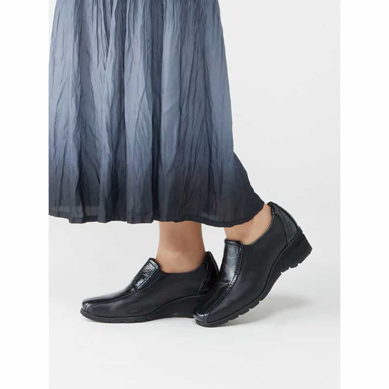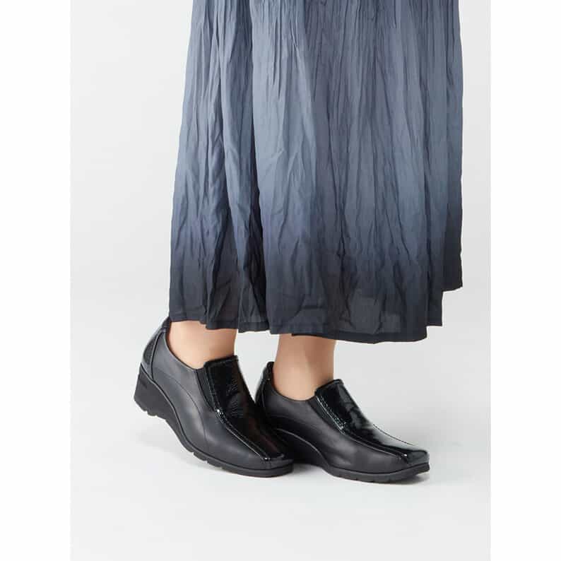5回目のリピート買いです。外反母趾の足にも優しくいくらでも歩けます。エナメル風がエレガントにも履きこなせとても気に入ってます。
