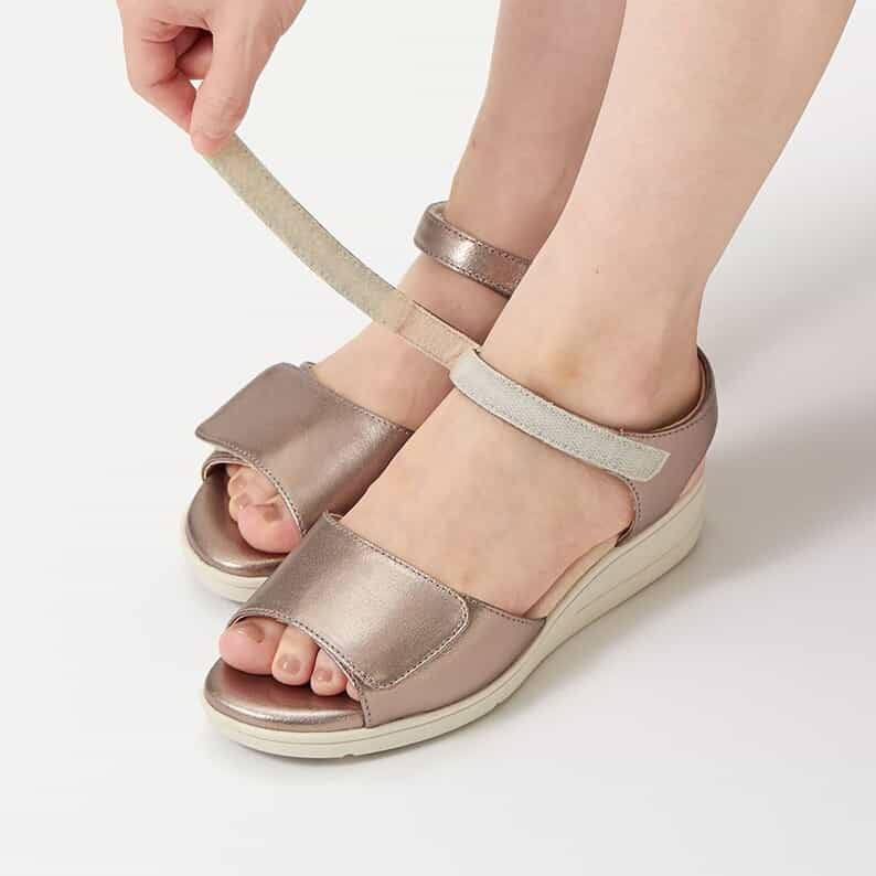 なので、私は靴下タイプのストッキングを履いてサンダルを履きます。難点はストッキングを履くと脱ぎ履きの時にベルトのマジックテープにストッキングが引っかかる点です。
