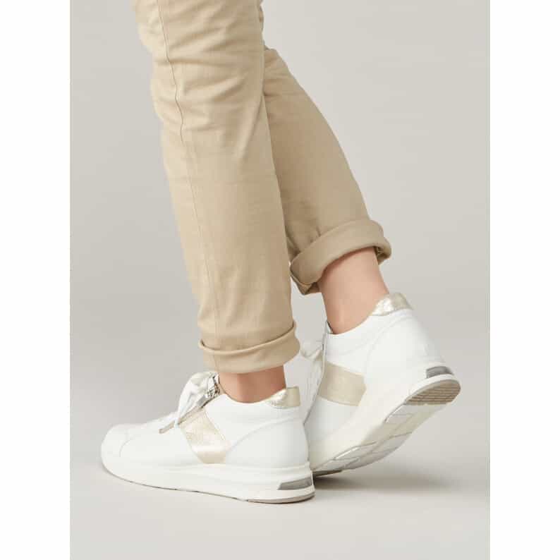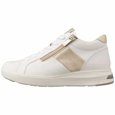 通勤にも使える白いスニーカーがほしくて購入。軽くて歩きやすく、ハイカットでもファスナーのおかげで履くのが楽です。防水スプレーをしておくと強めの雨の日にも利用できて良かったです