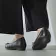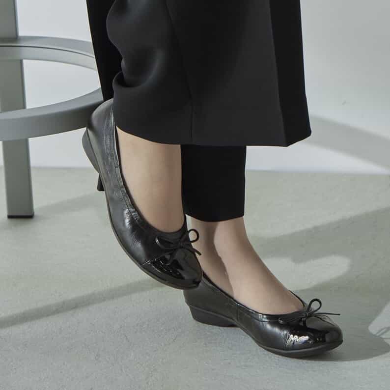 この型は何足目かわからないくらいリピートしています。スカートでもパンツでも合わせやすく毎日の通勤時に履いています。脇にシャーリングの加工がされているのでストラップなしでも脱げにくく、肌当たりが柔らかい素材で長時間履いていても痛くならないです。旅行のときも歩きやすくて重宝します。雨の日もつま先部分のエナメル加工が足先を守ってくれます。もっとカラーバリエーションが増えてくれるとうれしいです。