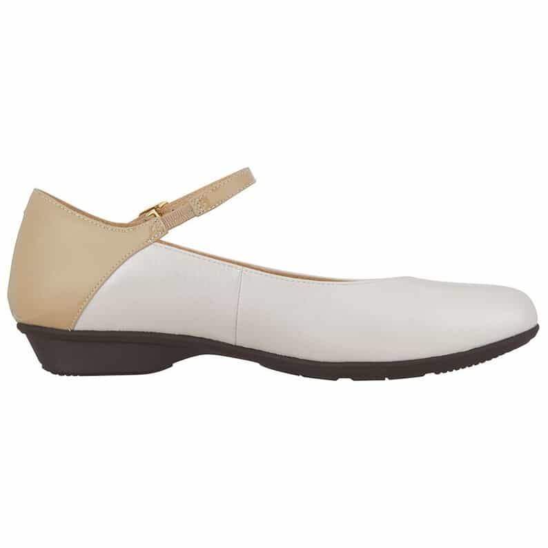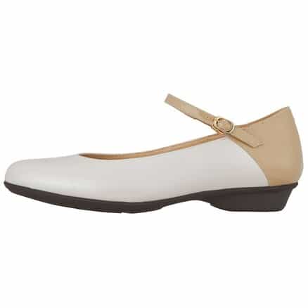 卒業式用にストラップ付きのローヒールを探していて、この商品の色違いで黒を購入しました。3Eなのでどうかなと思いましたが、ストラップがあるのでしっかり固定されて歩きやすいです。