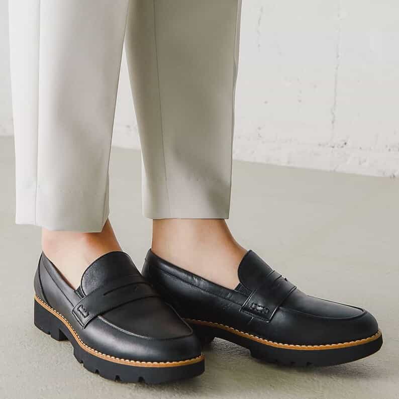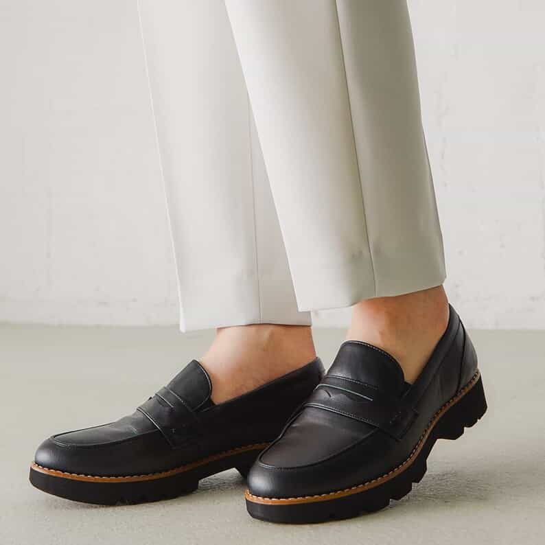 ローファーでヒールのあるデザインに一目惚れしました。自分の持っているパンツ丈が長い物、短いものも気にせず履くことができます。