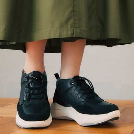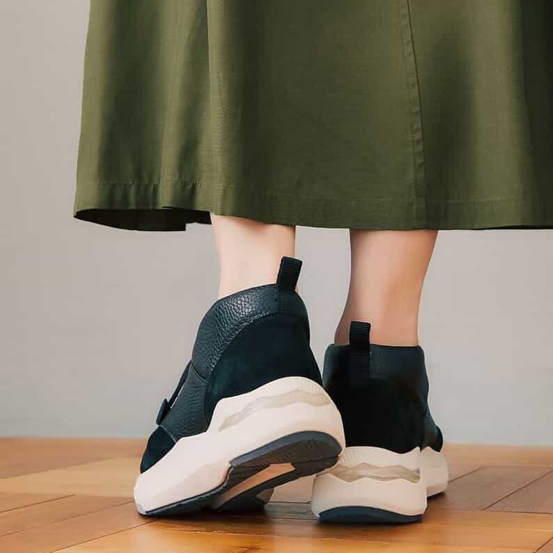 ハイカットのデザインが気に入ったのですが、履いてみてビックリ。足裏に伝わるクッション性が素晴らしく、つま先に付いている上向き傾斜のお陰で、足がすっと前に出て、とても歩きやすいのです。欲を言えば、紐がもう少し長ければ、もっと脱ぎ履きしやすいのだけれど…でもとっても良い靴です。