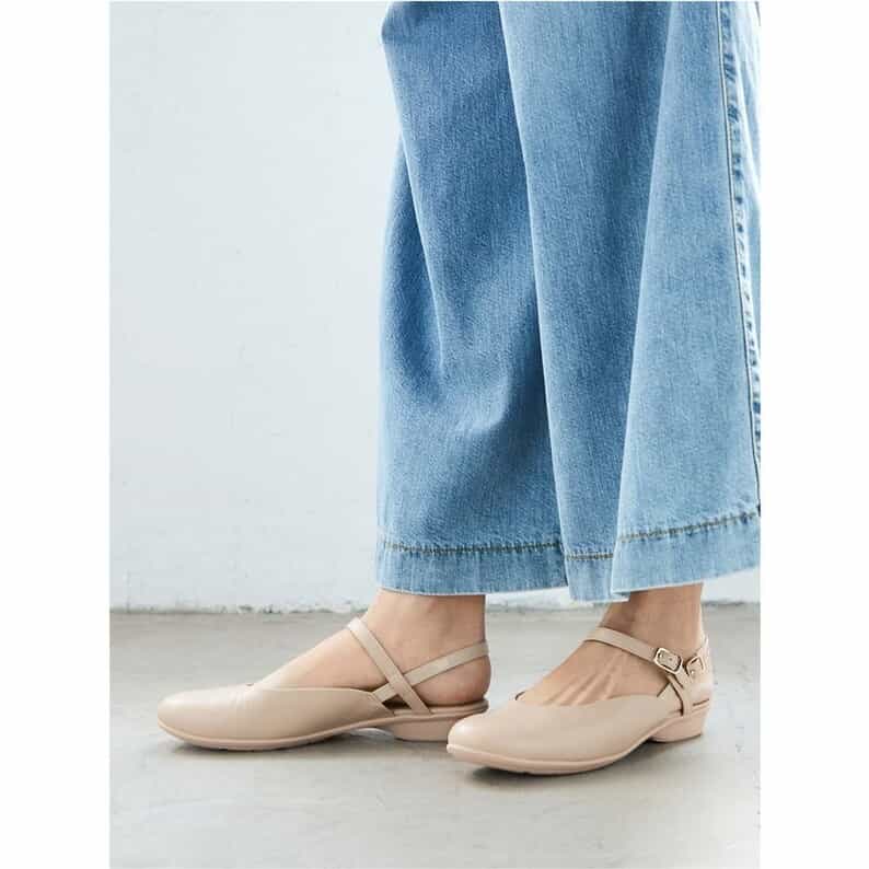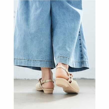 ストラップが落ちなくて、とても歩きやすい。デザインも可愛くて、薄い靴下でも、素足でも履けるし、春先から秋口まで長く履ける。場所も選ばず、カジュアルから綺麗めまで合わせやすい。