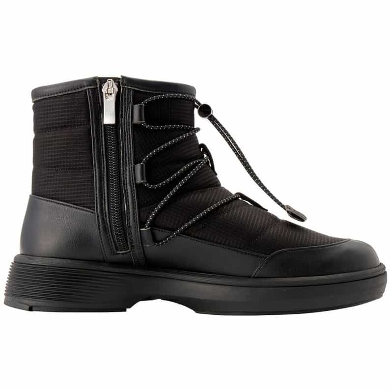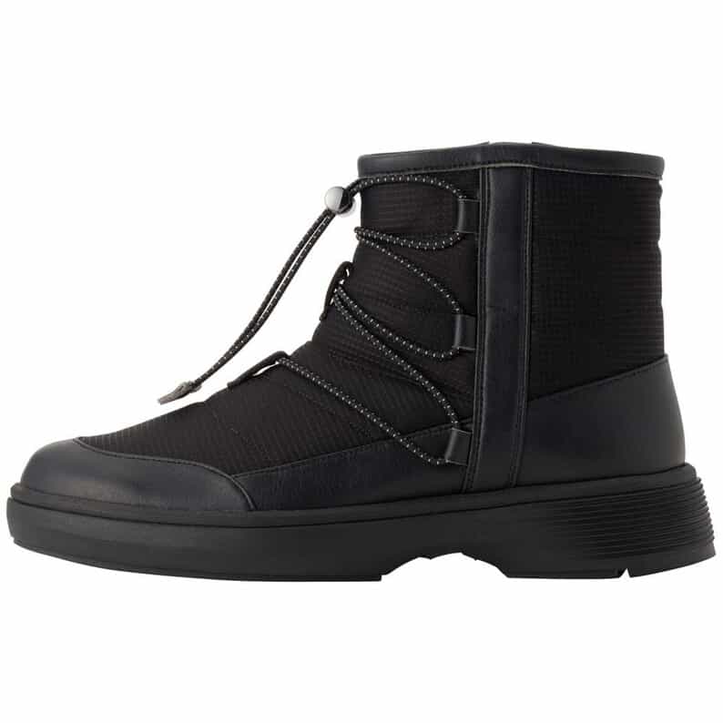 素足のような軽さと、長時間の歩行でも足への負担が少ないクッション性のよさが特長の、PEDALAシリーズ。新開発のソールを搭載し、雨や雪、凍結路面などさまざまなコンディションの路面に対応するウォーキングシューズです。六角形のパターンで構成するアウターソールは、路面の水膜を切り、雪も付着しにくい仕様。凍結路面でのグリップ力に優れたガラス繊維入りのラバーを突出させて配置することで、グリップ性を高めています。かかと部には耐摩耗性に優れたAHARラバーを採用。アッパーは100%リサイクルポリエステルをメインに、つま先やかかと部などに人工皮革を配置しています。ライニングは防水透湿性に優れた、ゴアテックスファブリクスを使用。クッション性に優れたハーフカップ中敷を採用。軽く履き心地のよいショートブーツは、内側にファスナーが付き、着脱が簡単。ゴムひもとシューレースストッパーにより、フィット感の調節のしやすさも魅力です。アウトドアテイストのカジュアルデザインで、気候の変化に対応する機能を備えた、1年を通じて履きこなせるアイテム。2Eラウンドラストモデルです。