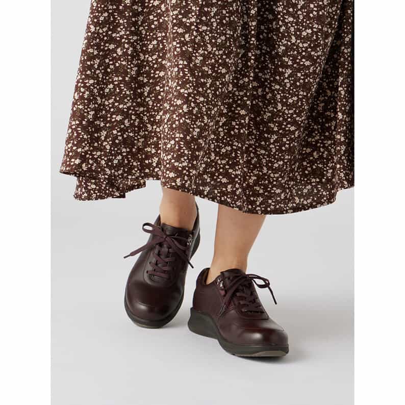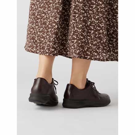 右膝関節症発症以来、色違いを履き続けています。しっかりホ-ルドされ、膝がぐらぐらしないので、痛みが軽減されました。ただ、長距離を歩くと、右足の人差し指が内出血したことがあります。直営店で、計測していただいた上購入しましたが、土踏まずが落ちているせいかもしれません。同じサイズでネットも利用しています。