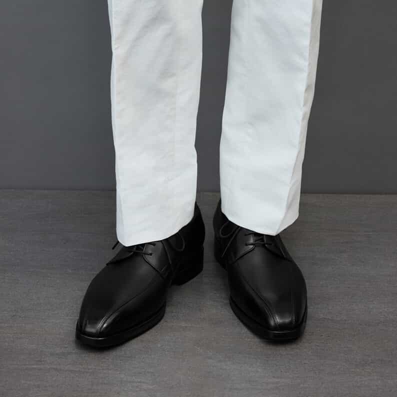 流れるようなステッチでスマートな印象の外羽根スワローモカデザイン、スクエアシルエットのドレスシューズ。防水透湿性に優れるゴアテックスファブリクスをライニングに使用しています。アッパーには上質感のある天然皮革を採用。革のツヤ感をしっかり出した仕上げにしています。ミッドソールには軽量性に優れたノーマルE.V.A.、かかと部にfuzeGELを搭載し、快適な歩行をサポートします。中足部はハードE.V.A.シャンクにより、歩行の安定性に配慮。アウターソールはノーマルラバーで、すり減りやすいかかと部には耐摩耗性に優れたAHARラバーを採用しています。※RUNWALK 7 BSはRUNWALK 7 BASIC DRESS SHOESの略称です。
