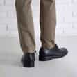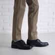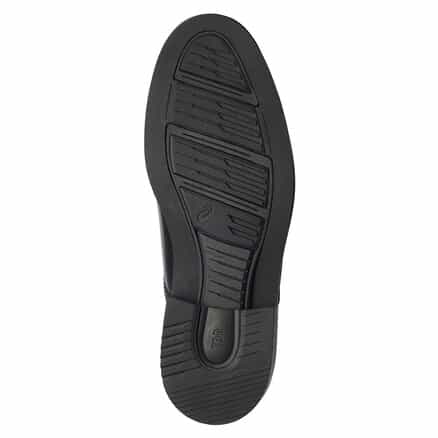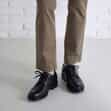洗練されたデザインにスポーツのテクノロジーを落とし込んだ、アクティブなビジネスシーンに対応するハイパフォーマンスシリーズ「GEL-BIZ」。ドレスにもカジュアルにも履きこなせる、外羽根プレーンのシューズです。アウターソールはダイアゴナルの意匠を採用。内側と外側でストライプ(溝)の太さと幅に強弱をつけることで、歩行軌跡(母趾側は摩耗しやすいので接地面積を広く、小趾側は少ない力でも曲がりやすく)を考慮すると同時に、常に上に向かって挑み続ける姿勢を表現しています。アウターソールのパーツを細かく分けることで軽量性、屈曲性を高めるとともに、デザイン性も考慮しています。中足部のハードE.V.A.により足のねじれを軽減し、安定した歩行をサポート。かかと部にはfuzeGELを搭載し、衝撃緩衝性を向上させています。アッパーには上質感のある天然皮革(牛革)を採用。上品な深い黒色のスムースレザーと、深いシボでカジュアルな印象のグレインレザーの2色展開です。ソールの外側をラバーで覆い染料仕上げをすることで、上品なツヤ感が品格を表現しています。つま先にボリュームを持たせたラウンドシルエット。ライニングに防水透湿性に優れたゴアテックスファブリクスを使用しています。スタイリングの汎用性が高く、日常のさまざまなシーンで活躍する一足。3Eラウンドラストです。