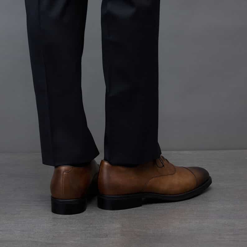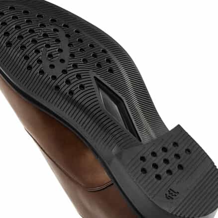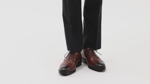 つま先に一直線のラインが入った内羽根ストレートチップ、ラウンドシルエットのドレスシューズ。アッパーにはフランス産の上質な原皮を使用したキップレザーを採用。シャドースプレーのツヤを強調し、木型の陰影がきれいに出る仕上げを施しています。ライニングにも牛革を使用。インナーソールは足なじみのよいオーソライト中敷。ミッドソールにはクッション性と反発性を併せもつSPEVA、かかと部にfuzeGELを搭載し、快適な歩行をサポートします。中足部はTPUシャンクにより、歩行の安定性に配慮。アウターソールの擦り減りやすい部分には、耐摩耗性に優れたAHARラバーを採用しています。