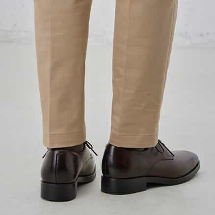 洗練されたデザインにスポーツのテクノロジーを落とし込んだハイパフォーマンスシリーズ「GEL-BIZ」。オーセンティックな印象の外羽根プレーンで、防水透湿性に優れるGORE-TEXファブリクス搭載モデルです。アウターソールはパーツを細かく分けることで軽量性、屈曲性を高めるとともにデザイン性も考慮。中足部のハードE.V.A.により、安定した歩行をサポート。かかと部にはfuzeGELを搭載。アッパーには上質感のある天然皮革を採用。ブラックは革のツヤ感を強調し、コーヒーは雰囲気のあるアンティーク仕上げです。ソールの側面はラバーで覆い、染料仕上げに。天候を気にせず、日常のさまざまなシーンで活躍します。