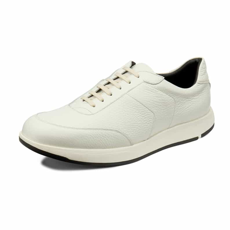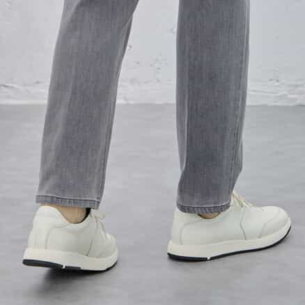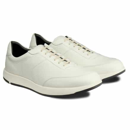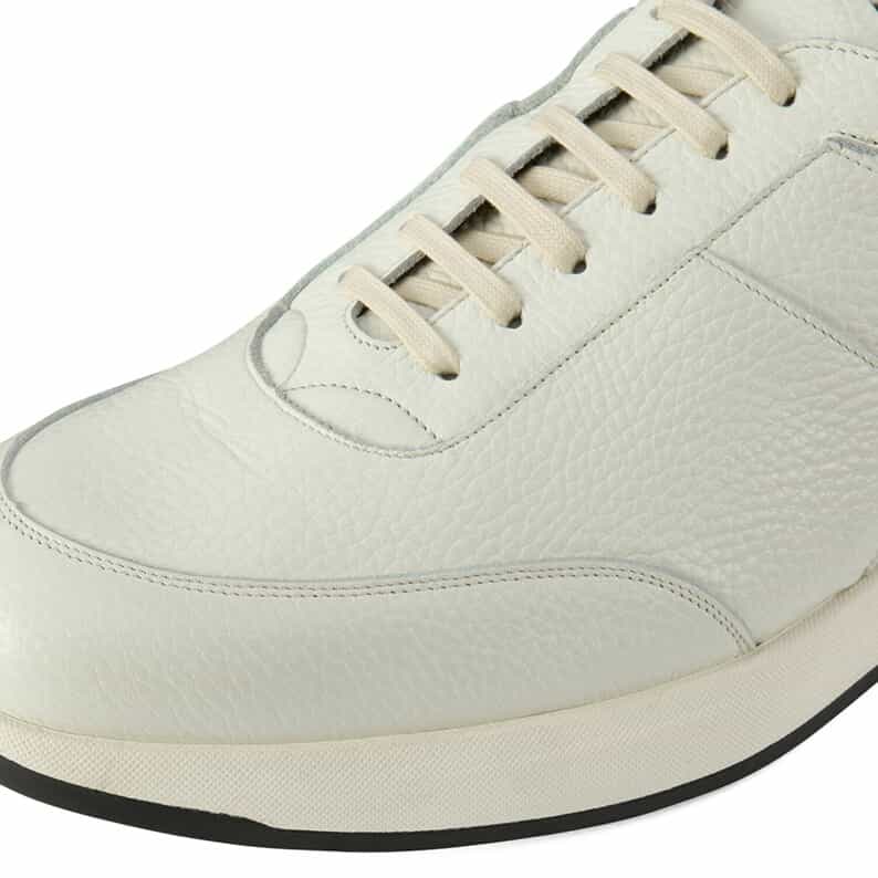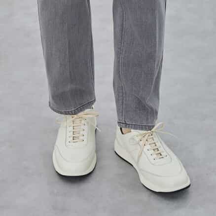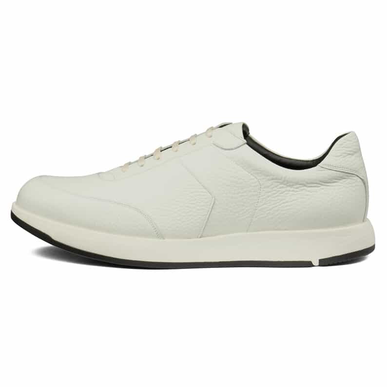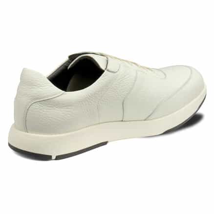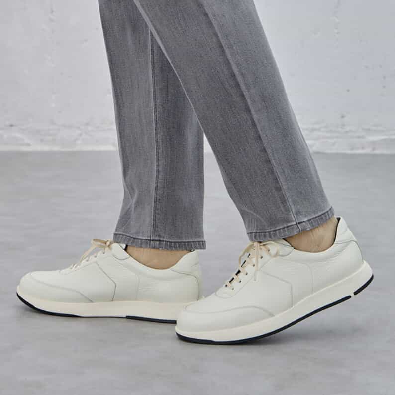 スーツスタイルにも合う、気品をまとったドレススニーカー。シンプルなデザインでありながらハトメ補強と本体の重ね方を上下反転させることで、遊び心を表現しています。アッパーにはイタリア産の上質なシボレザーを採用。ライニングの前側にはメッシュ素材を配置し、ソフトな足当たり。インナーソールは足なじみのよいオーソライト中敷。前足部には吸放湿性に優れた人口皮革を配置しています。ミッドソールにはクッション性と反発性を併せもつSpEVA、かかと部に衝撃緩衝機能GELを搭載。アウターソールは耐摩耗性に優れたAHARラバーを採用しています。