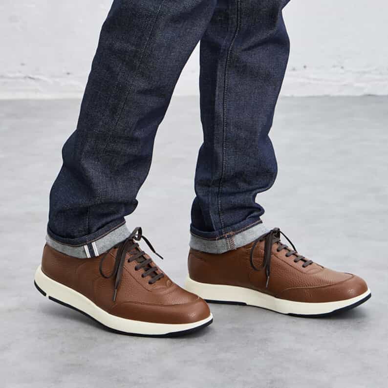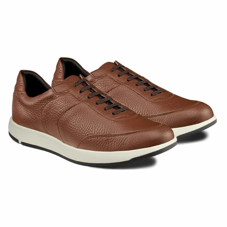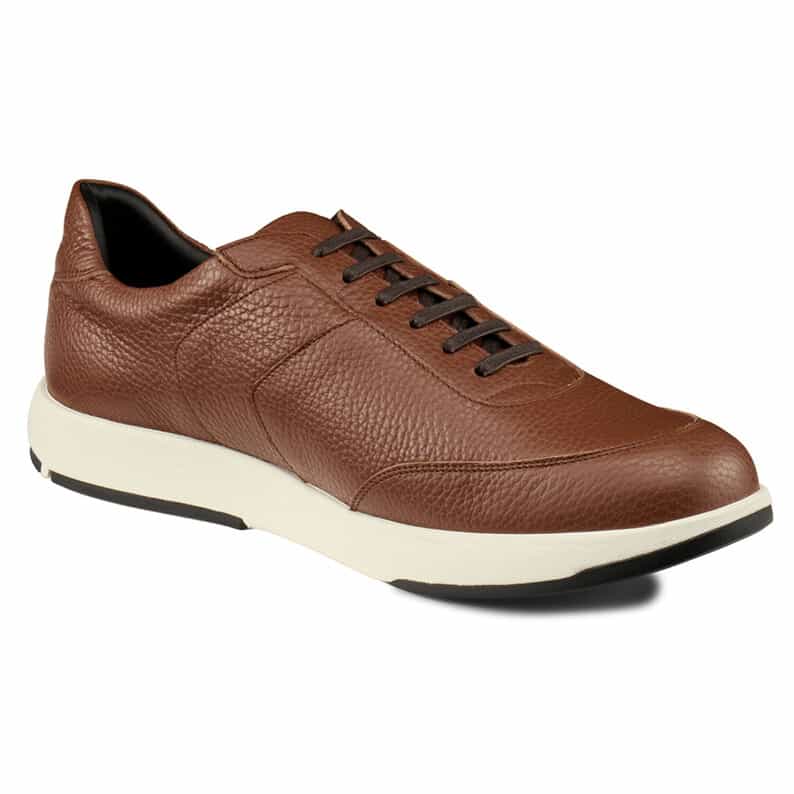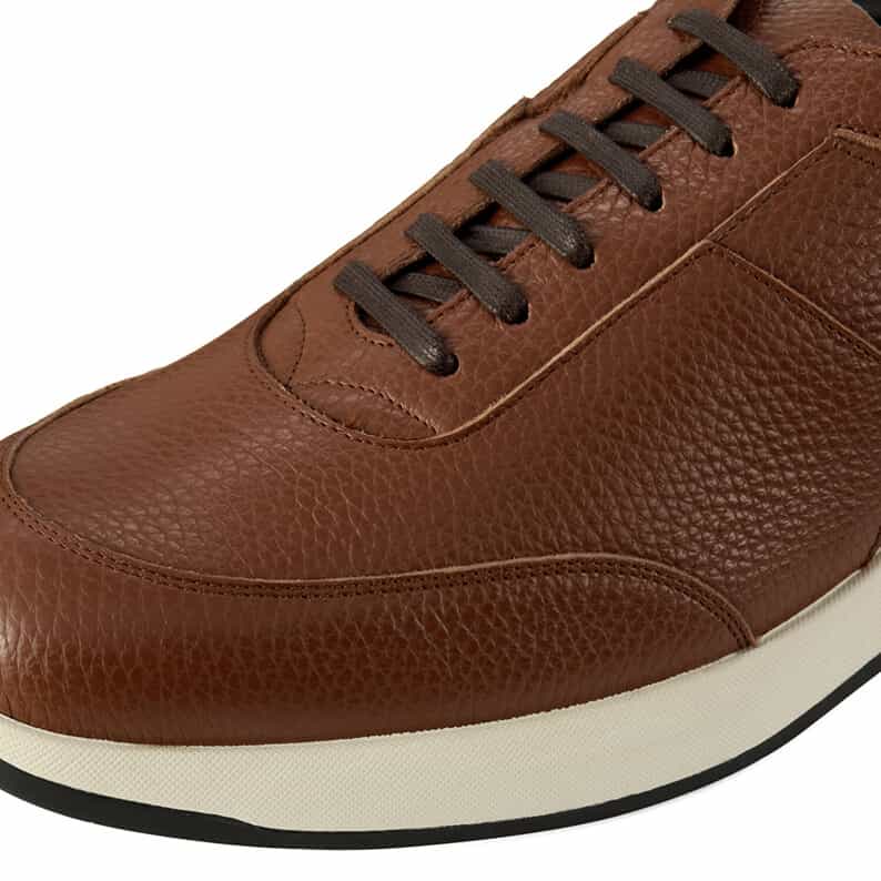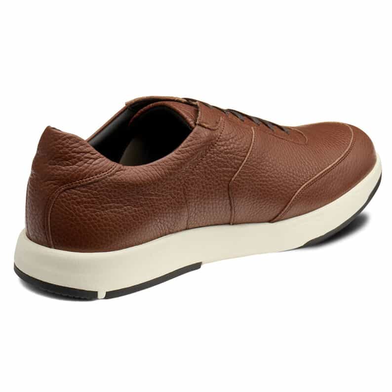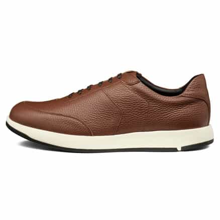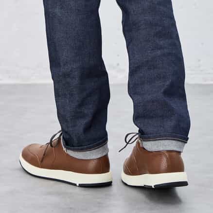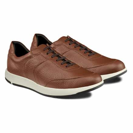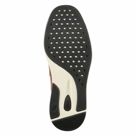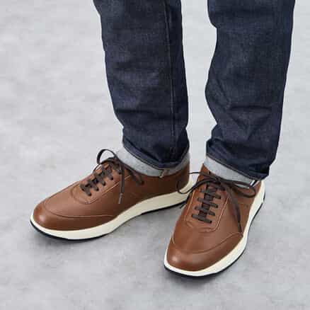 スーツスタイルにも合う、気品をまとったドレススニーカー。シンプルなデザインでありながらハトメ補強と本体の重ね方を上下反転させることで、遊び心を表現しています。アッパーにはイタリア産の上質なシボレザーを採用。ライニングの前側にはメッシュ素材を配置し、ソフトな足当たり。インナーソールは足なじみのよいオーソライト中敷。前足部には吸放湿性に優れた人口皮革を配置しています。ミッドソールにはクッション性と反発性を併せもつSpEVA、かかと部に衝撃緩衝機能GELを搭載。アウターソールは耐摩耗性に優れたAHARラバーを採用しています。