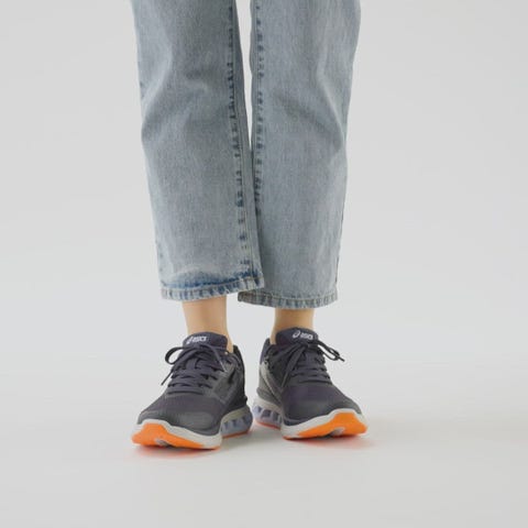 「あなたのひざを快適に」をコンセプトに、O脚などひざ関節の内反に伴う、ひざへの負担を軽減するウォーキングシューズ・KNEESUP(ニーズアップ)。ウォーキングや散歩に活用したい、アクティブモデルです。産・学・医で共同開発のクッション機能「MCCS」を搭載。靴底内側に配置したクッションが、かかと荷重時にたわむことで外側から内側に傾斜。ひざ関節を内側へ誘導することで、ひざへの負担を軽減しています。ミッドソールはスムーズな歩行をサポートする舟底設計を採用。かかと部には衝撃緩衝機能GELを搭載しています。足なじみのよいポリウレタン素材を採用したインナーソールは、立体形状で高いフィット感を追求。かかと部のカウンター(かかと芯)は、外側着地によるかかとの内倒れを抑えるため、内側を長く設計。アッパーには軽く通気性のよいメッシュを採用。シームレスな構造で軽量性を追求しています。内側にファスナーを配置し、脱ぎ履きも簡単です。アシックスストライプがアクティブな印象を演出。かかと部には反射プリントを採用し、夜間の視認性に配慮。毎日のウォーキングが楽しく快適になる、健康増進に役立てたいアイテムです。ゆったりした履き心地の4Eウィズ相当です。