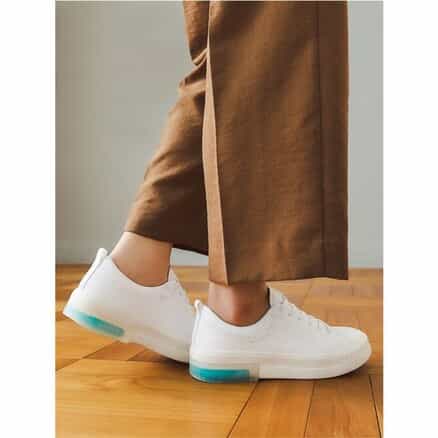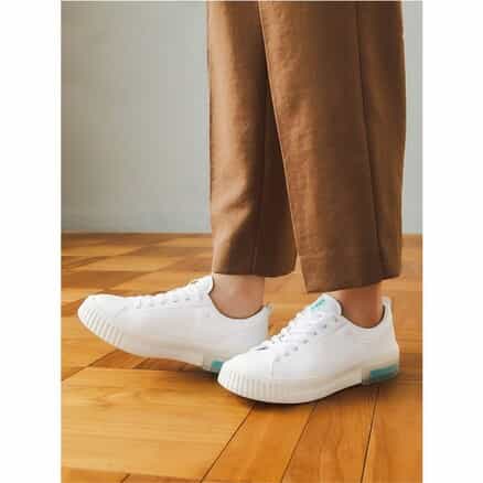 1ヶ月前に通勤のために購入しました。スカートでもパンツでも合います。紐がゴムで脱ぎ破棄しやすくて、足に当たる感じもなく、でもフィットして、とても気に入ってます。他のスニーカーに比べて、暑い感じが気になりますが、すごく蒸れるわけではないです。