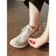 甲高幅広で靴選びには苦労してます。実寸より1センチ大きいサイズを選びました。ファースナーが付いているので履く時も楽です。色違いも欲しいな