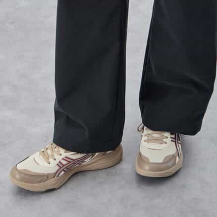 エネルギー消費を抑えて長く歩き続ける、ウォーキングの歩行動作に適した「エナジーセービング」機能を搭載した、ロングウォーク対応のスニーカーデザインモデル。かかとからハトメに伸びたアッパーパターンが、足を適度にホールドすることにより、快適な歩行に配慮。ソールのつま先部分をカーブ形状にすることで、歩行時の足首の屈曲を減らし、足首関節のエネルギー消費を抑えることで効率の良い歩行を促します。さらに前足部にはハードE.V.A.を搭載。剛性を高め、より効率的なエナジーセービング機能を追求。かかと部に着地時の衝撃緩衝性を高めるfuze GELを搭載。アウターソールには耐久性を考慮してAHARPLUSラバーを採用。アシックスのウォーキングテクノロジーが詰まった、快適なロングウォークをサポートする一足です。
