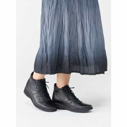 チャックがあるので、履いたり脱いだりが楽で、なおかつ紐で足にフィットするよう調節もきくので、とても良いです。東京でも少し雪がつもる時もあるので、一足用意しておきたくて購入しました。もちろん雪でなくても冬靴として履くつもり。とてもおしゃれだと思います。