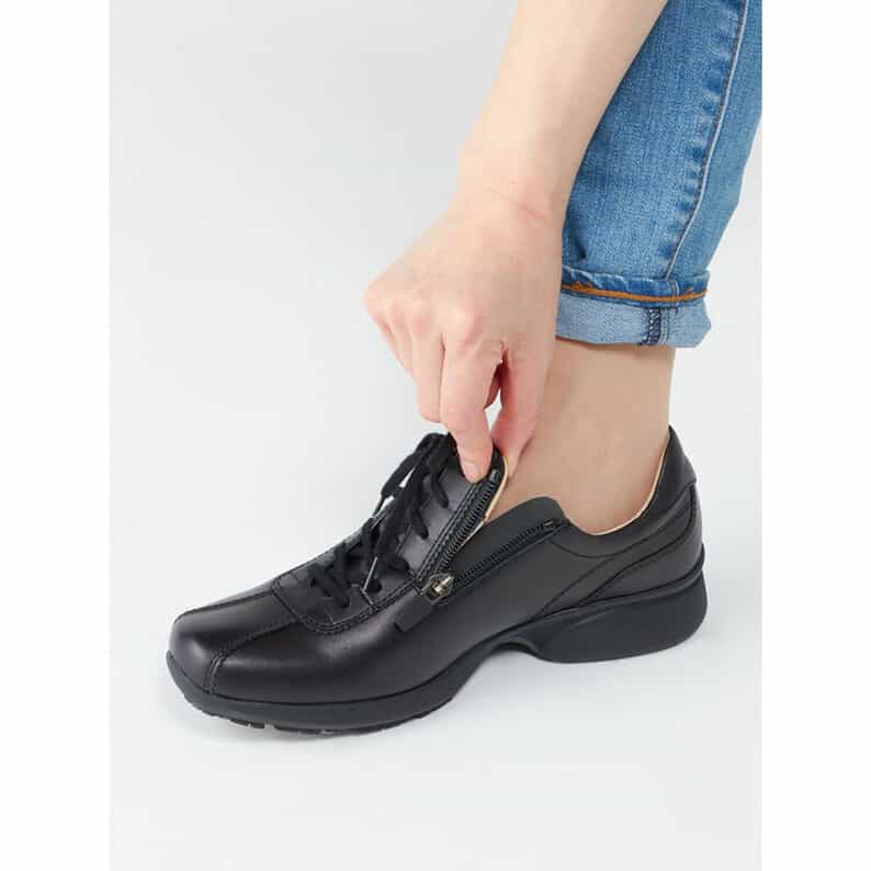 足回りの測定はしていたのでDサイズが合うことはわかっていたのですが今回初めてチャレンジしました。念の為店舗で試し履きして問題ないか確認後ネットで注文。これまでにないくらいフィット感がありました。それでも歩き始めるとまだ少しつま先側に余裕があるので、前方だけのインソールと土踏まずのアーチのインソールを入れてバッチリです。少々お高いですが靴と足の関係は大事なので次は色違いで購入したいと思います。