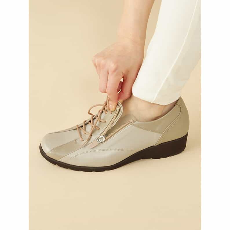 外反母趾であるのと、勤務先がお玄関で靴を脱ぐ所なので、ファスナー付きペダラを長年愛用しております。特にこのお品は縦のラインがはっきりしていて、このタイプの中ではシャープに見えるのがありがたいです。
