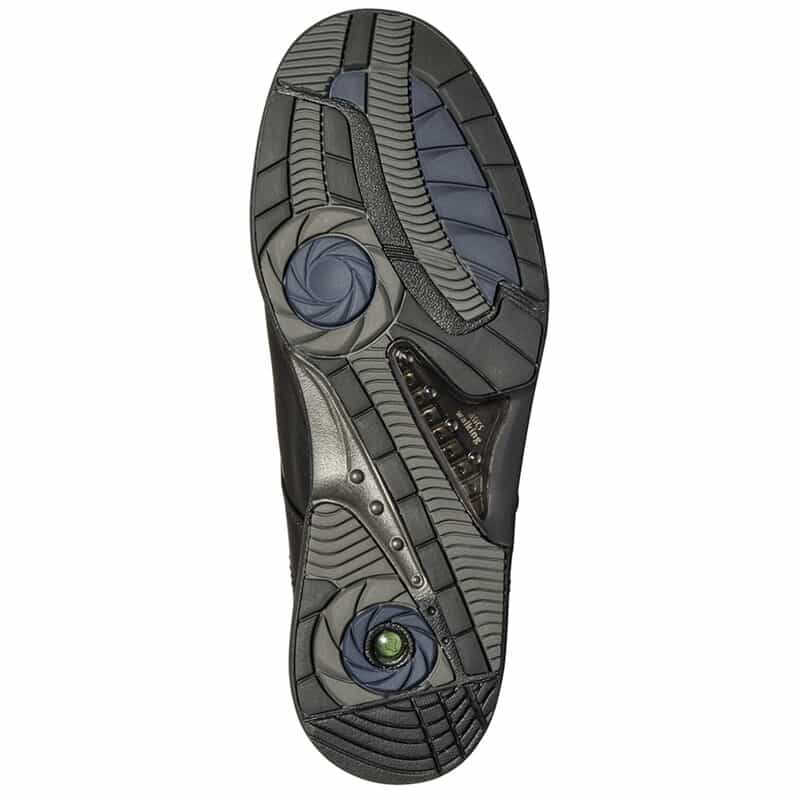 長時間の立ち仕事でも柔らかいソールが足を包んで無駄な動きを抑えて、衝撃吸収ジェルが足腰を守ってくれます。