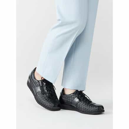見た目も履き心地もシュッとしています。生地もおしゃれ。スーツに合わせてもスニーカーっぽくなくてキレイに決まります。
