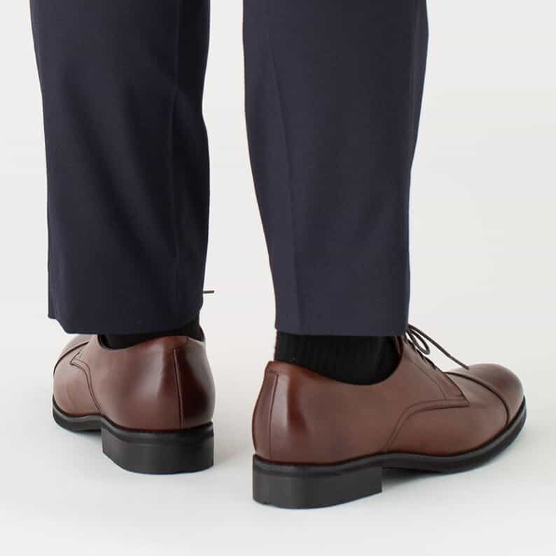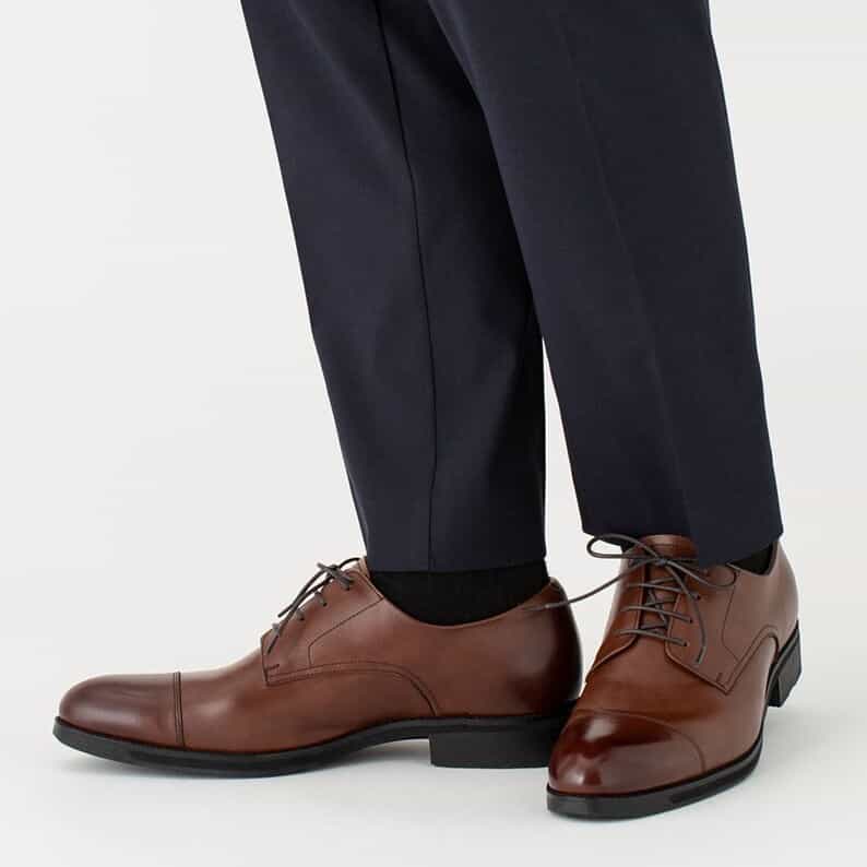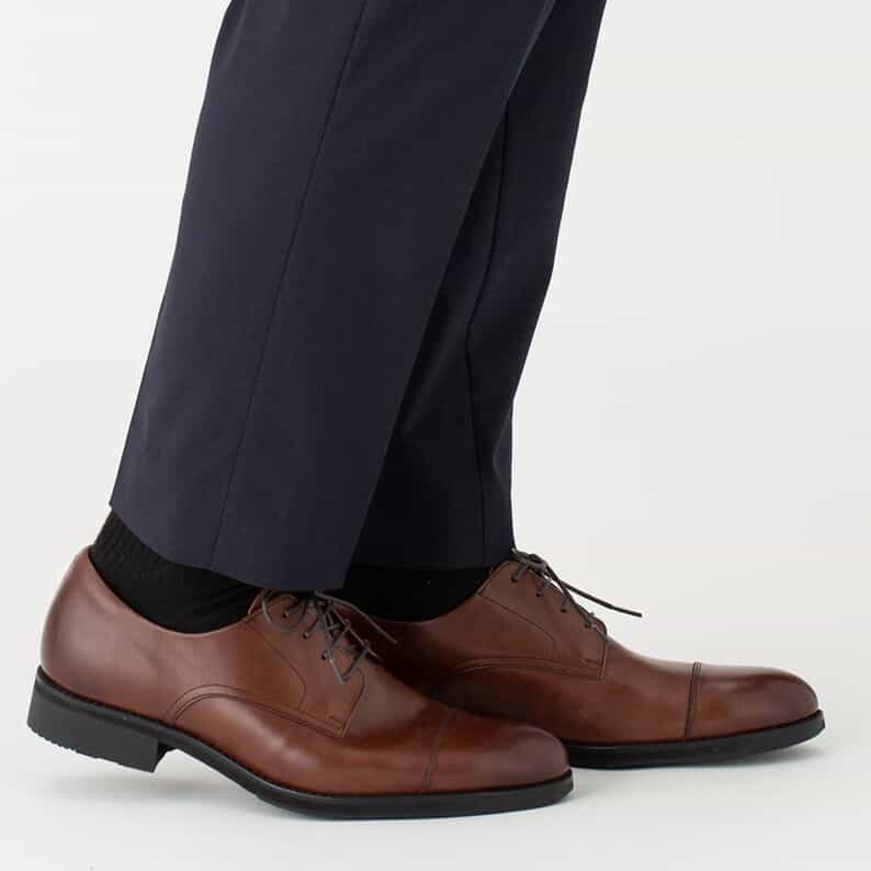 雨の日にも対応する、外羽根ストレートチップデザインのスポーツテクノロジーを搭載したビジネスシューズ。防水透湿性に優れたゴアテックスファブリクスをライニングに使用しています。アッパーにはきめの細かい上質な国産ステアレザーを採用。中敷にはスポーツシューズにも使われているオーソライトを使用。足の形状に沿い、やわらかな履き心地でクッション性に優れています。ミッドソールにはクッション性と反発性を併せもつSPEVAを採用し、かかと部に衝撃緩衝機能GELを搭載。ソールの中足部に配置した樹脂パーツにより、歩行時の足のねじれを軽減します。アウターソールのかかと部には耐摩耗性に優れたAHARラバーを採用。2Eラウンドラスト。雨の日も履きこなせる、長期の出張などにも使い勝手のよい一足です。 ※中敷きのデザイン変更に伴い、掲載写真と異なる中敷きでお届けする場合がございます。また、本商品に付属する中敷きのデザインはお選びいただけません。あらかじめご了承ください。