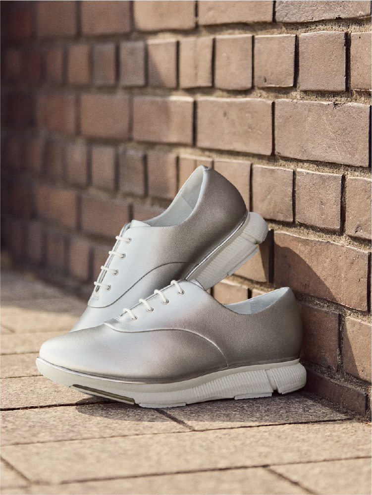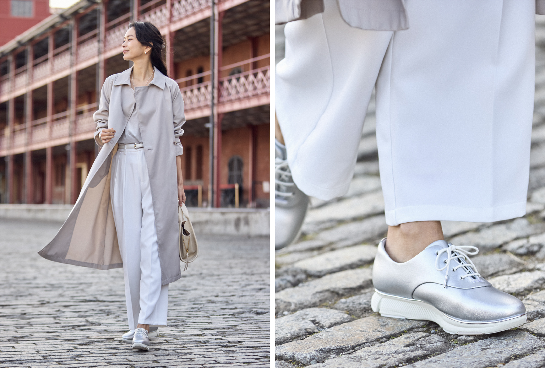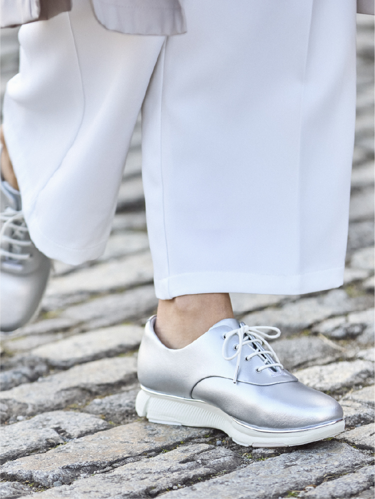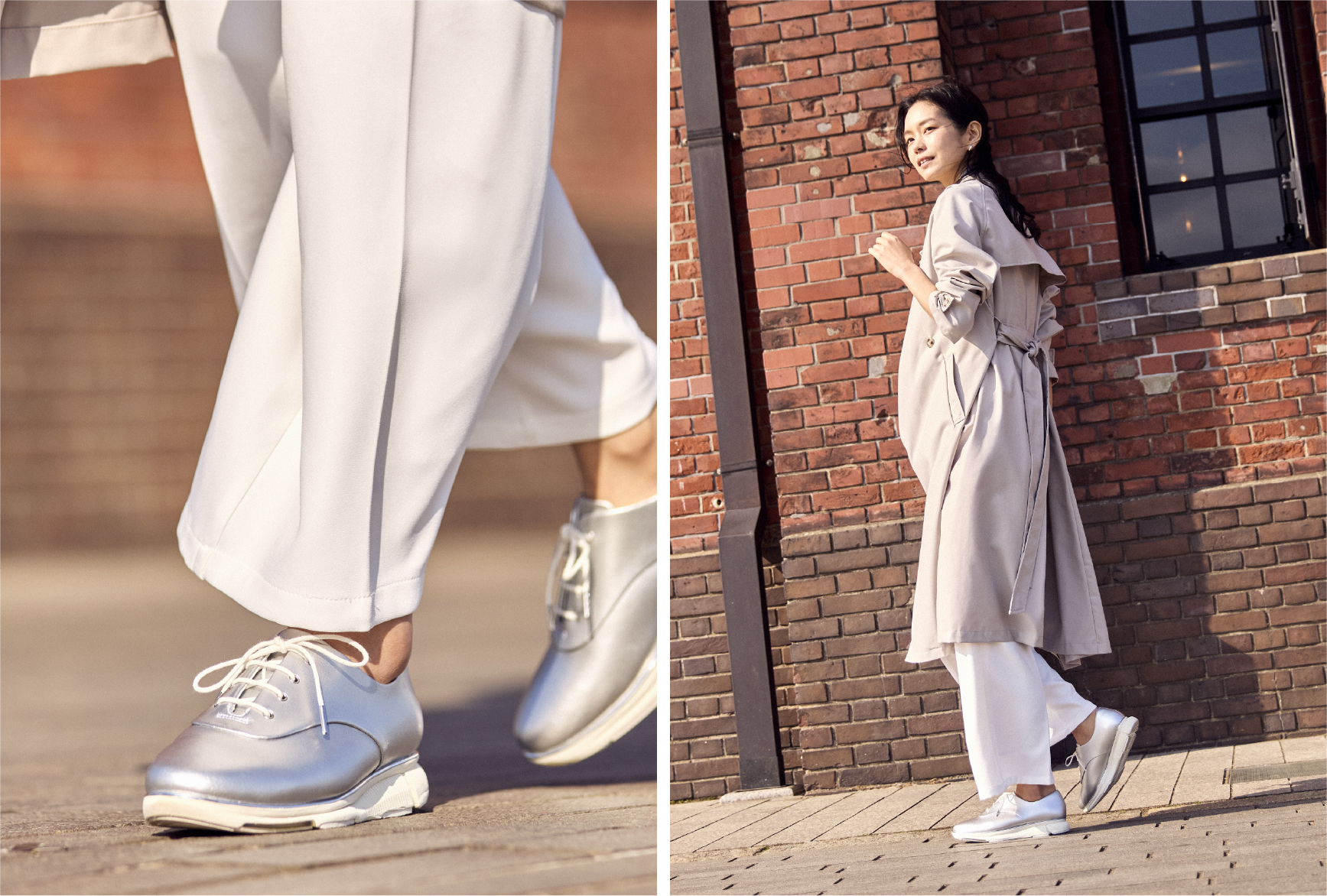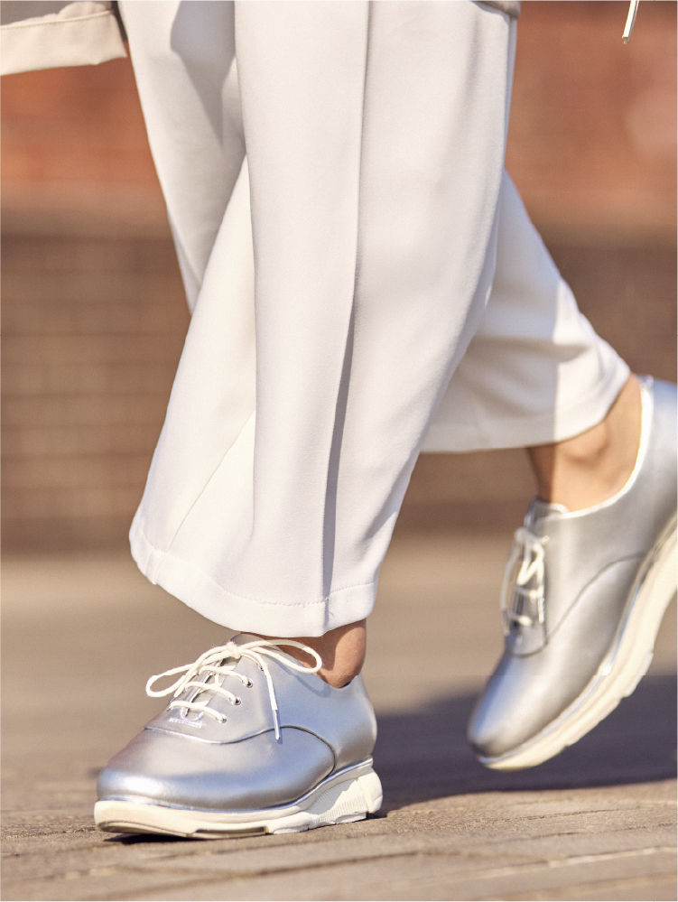 ハトメ飾りの処理や、シューレース先端のメタル使いなど、細部にまでこだわったデザイン性で、コーデのアクセントに。