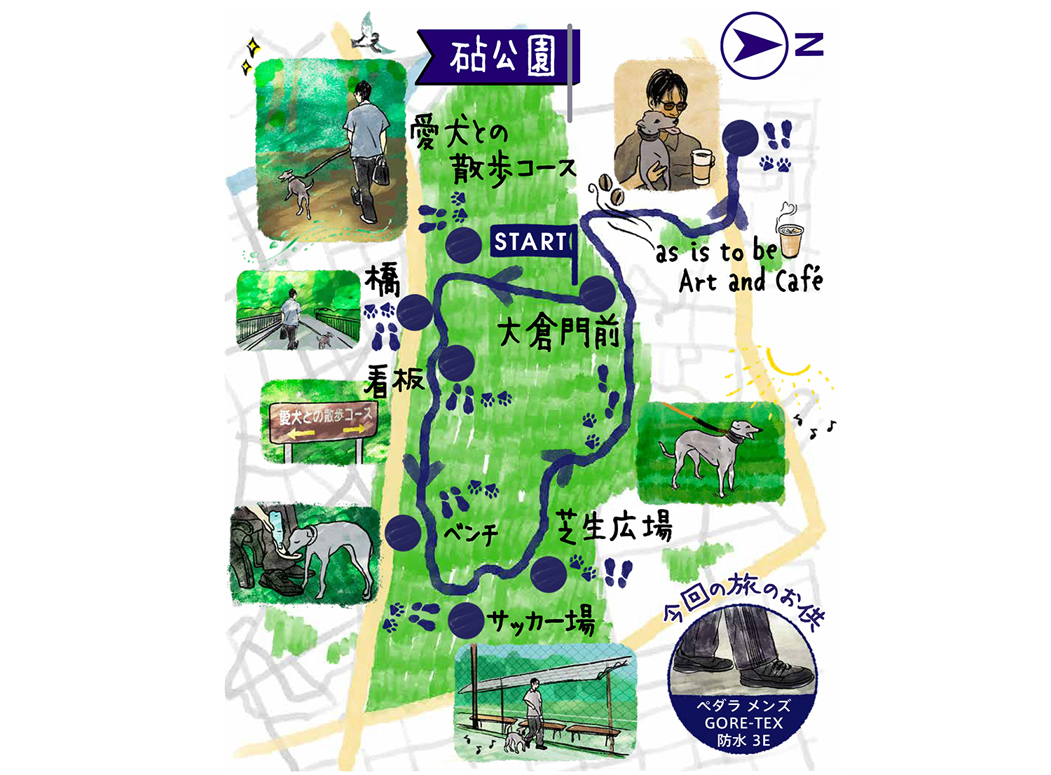 早朝の砧公園大蔵門前に、今回のナビゲーターを務める西野健司さんがやってきました。傍らには、お散歩が楽しみで仕方なさそうなかわいい愛犬が一緒です。