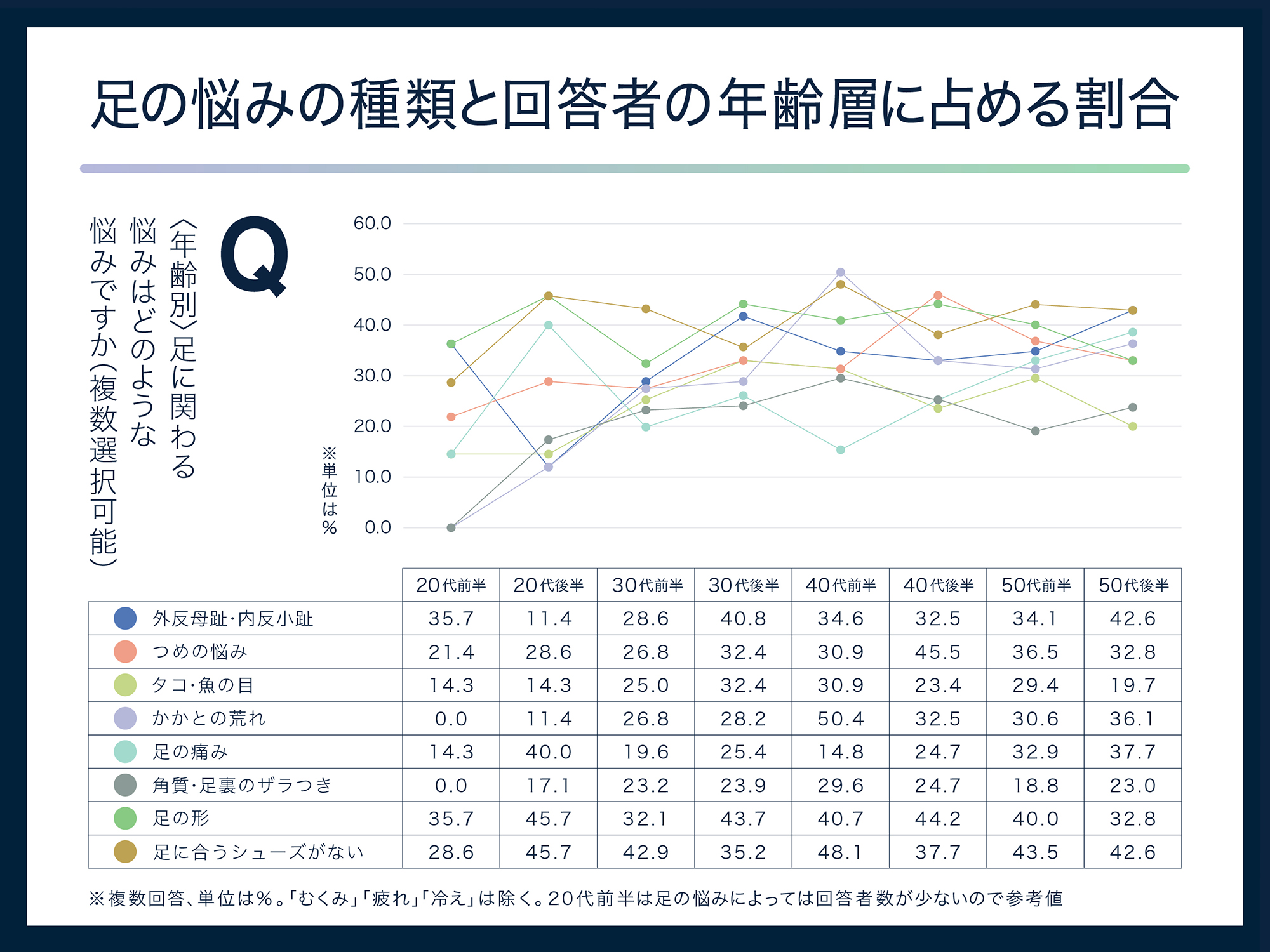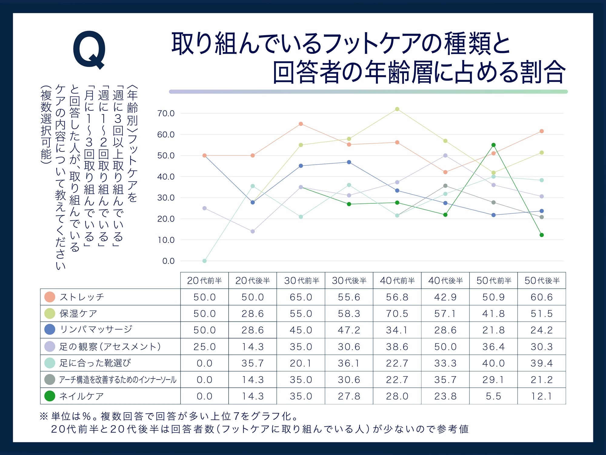 自由記述でも「フットケアの効果が分からない」「フットケアの正しいやり方が分からない」「何が正しい情報か分からない」といった声も多く寄せられました。